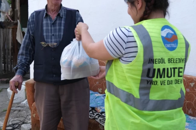 İnegöl Belediyesi Sosyal Yardım İşleri Müdürlüğü'nün en önemli faaliyet alanlarından biri sıcak yemek yardımları olarak öne çıkıyor. 65 yaş üstü, sağlık durumu yemek yapmaya elverişsiz olan ve yemek yapacak kimsesi bulunmayan hasta, yaşlı, engelli ihtiyaç sahibi ailelere sabah kahvaltısı ve akşam yemeği olmak üzere her gün düzenli olarak yemekleri kapılarına kadar götürülüyor. Anlaşmalı yemek firması tarafından hazırlanan yemekler, yetişkin bir insanın günlük enerji ve besin ihtiyacını karşılayabilecek şekilde kalori değerine sahip, kaliteli, lezzetli ve doyurucu olarak özel şekilde hazırlanıyor. Profesyonel aşçılarca sağlık standartlarına uygun mutfakta 6 çeşit kahvaltılık ve 4 çeşit yemekten oluşan akşam yemeği, vakumlu kaplarla steril şekilde dağıtıma hazırlandıktan sonra resmi dağıtım aracı ile soğumadan sıcak bir şekilde ihtiyaç sahibi ailelerin evlerine bırakılıyor.