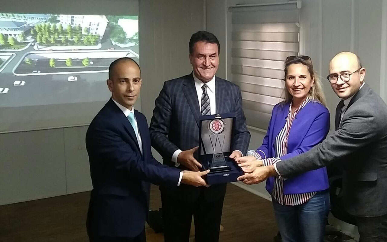 Şantiye gezisi sonunda Bursa İnternet Gazetecileri Derneği Başkanı Mesut Demir, Başkan Yardımcısı Aysın Komitgan ve Hasan Yalçın ile birlikte Belediye Başkanı Mustafa Dündar'a teşekkür plaketi takdim etti.