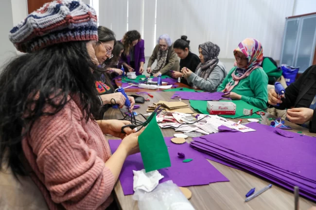 Bursa Kent Konseyi tarafından 8 Mart Dünya Emekçi Kadınlar Günü kapsamında düzenlenen keçe atölyesine katılan kadınlar, el emekleri ile çeşitli süs eşyaları hazırladı.