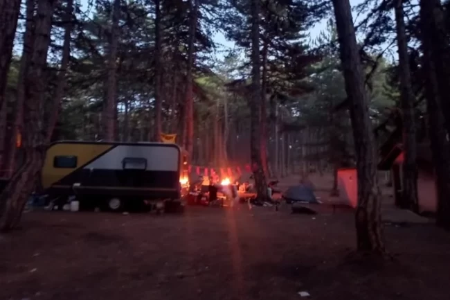 Bursa Uludağ'da kampçıların uğrak yerlerinden biri olan Kocayayla'da hafasonu, yasaklara rağmen kamp ateşleri yakıldı.