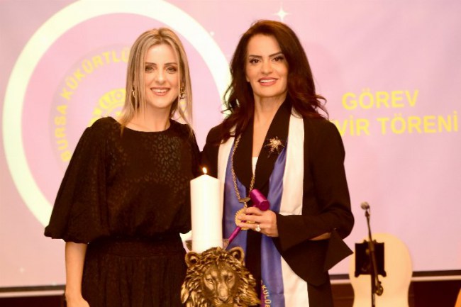 Bursa'da Kükürtlü Lions Kulübü'nün yeni dönem başkanı Emire Cantürk Eren, görevini görkemli bir törenle Ebru Onuker'den devraldı.
