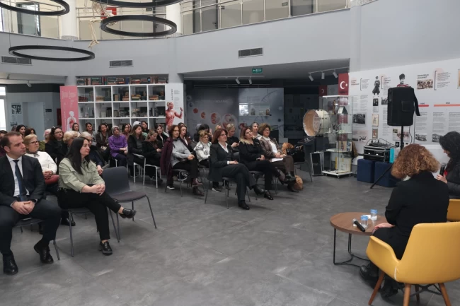 Nilüfer Belediyesi Dr. Ceyhun İrgil Sağlık Müzesi'nde gerçekleştirilen söyleşiye; Nilüfer Belediye Başkanı Şadi Özdemir'in eşi Nuray Özdemir, Nilüfer Kent Konseyi Genel Sekreteri Elifhan Köse Çal ve çok sayıda kadın katıldı.