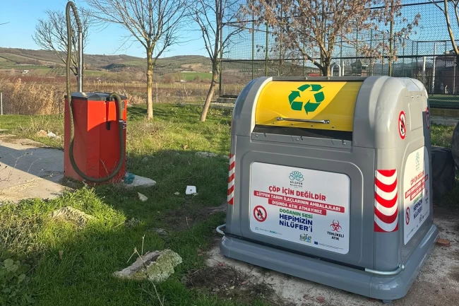 BURSA (İGFA) - Bursa Nilüfer Belediyesi, çevre ve insan sağlığını tehdit eden zirai ilaç ambalaj atıklarının kontrollü toplanması için yürüttüğü çalışmaları genişletiyor. Bu kapsamda Konaklı, Fadıllı, Başköy ve Çatalağıl Mahallelerinin ardından Çaylı Mahallesi'ne de özel atık konteyneri yerleştirildi.