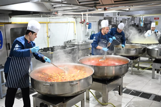 BURSA (İGFA) - Bursa Büyükşehir Belediyesi, dayanışmanın çoğaldığı, paylaşmanın berekete dönüştüğü Ramazan ayında her gün vatandaşları iftar sofralarında buluşturuyor. Birbirinden lezzetli yemekler, BURFAŞ'ın Acemler'de bulunan ana mutfağında usta şefler tarafından özenle hazırlanıyor.