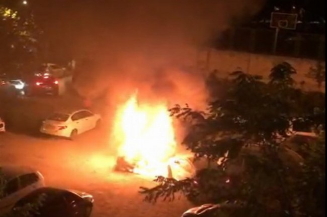 Bursa'nın göbeğinde araç alev alev yandı, mahalleli ayaklandı