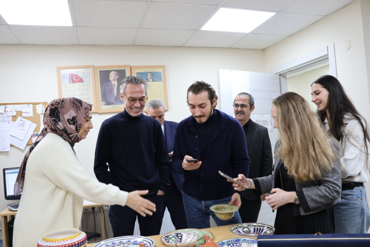 Ünlü modacı Özgür Masur, Türk kültürünün önemli unsurlarını oluşturan geleneksel sanatlar, giyim-kuşam kültürü ve mutfak kültürünün aslına uygun şekilde araştırılıp arşivlendiği üretim atölyelerinde incelemelerde bulundu.