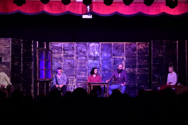 Nurettin Örük, Emre Yaşa, Furkan Yıldırım, Şafak Taşçı, Yüksel Akalp, Mahmut Ufuk Durmaz, Ercan Böyümez ile Bilge Eylem Özgür'ün oynadığı, dört mahkumun sığındığı bir depoda geçen ve fiziksel sınırların ötesinde zihinsel, toplumsal duvarların varlığını sorgulayan oyun, izleyicilerden büyük alkış aldı. Son ana dek ilgiyle takip edilen oyun sonrası Osmangazi Belediyesi Meclis Üyesi Burak İleri, tiyatro ekibine çiçek takdim etti.