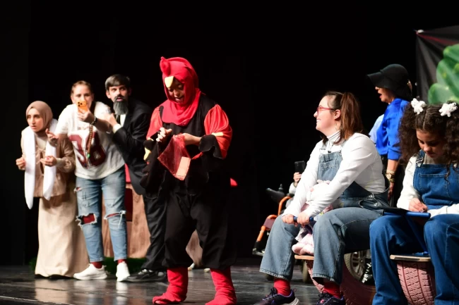 BURSA (İGFA) - Osmangazi Belediyesi'nin toplumsal farkındalığı artırma ve engelli bireylerin yaşamını kolaylaştırma amacıyla hayata geçirdiği tiyatro etkinliği, Ahmet Vefik Paşa Bursa Devlet Tiyatrosu'nda sahnelendi. Osmangazi Engelliler Meclisi'nin 6 ay süren hazırlıklarının ardından sahneye çıkan engelli bireyler, 3 kardeşin babalarından kalan miras hikayesini eğlenceli bir dille anlatan oyunda başarılı performanslarıyla izleyicilerin beğenisini topladı.