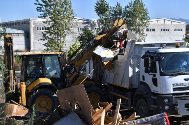 Osmangazi Belediyesi, Küçükbalıklı Mahallesi'nde şahsa ve kamuya ait arsalara kaçak olarak yapılan derme çatma barakaları yıkarak temizledi.