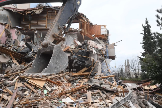 Bursa Osmangazi'de tarihi surları tehdit eden riskli bina yıkıldı