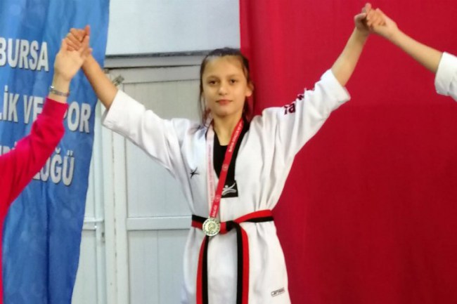 Osmangazi Belediyespor Taekwondo Takımı sporcularından Funda Yıldırım, Okullar Arası Yıldızlar İl Birinciliği Müsabakaları'nda göz doldurdu.