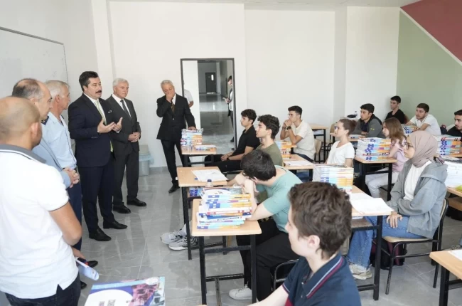 Bu yıl hazırlık kurslarına kayıt yaptıran 130 öğrenciye, ders kitapları ve soru bankaları Yenişehir Kaymakamı Ümit Altay, Garnizon Komutanı İbrahim Feyzi Büğdüz, İlçe Milli Eğitim Müdürü Hüseyin Yaşar ile birlikte dağıtıldı.