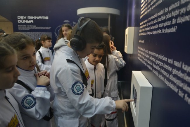 Yıldırım İlkokulu 4'üncü sınıf öğrencilerinin ziyareti ile başlayan programlarda, çocuklar önce astronot kıyafeti giyiyor, sonrasında roket modelin içinden geçerek uluslararası uzay istasyonu modülünde bir astronotun 24 saatini gözlemleyebilme imkânı buluyor. Sergi alanındaki karadeliklerin oluşumu, manyetik alanın doğası, gezegenlerin sesi, gece gündüz oluşumu, güneş sistemi ve evrendeki büyüklükleri, büyük patlama gibi bilgileri onlara özel dizayn edilmiş düzenekler ve donanımlar eşliğinde öğrenen uzay meraklıları son olarak dijital gösterim alanında izledikleri film sonrası sen evrensin uygulamasında yaptıkları roket ve astronot resimlerinin dev ekranda hareketli halini görüyor.