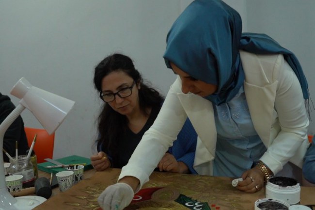 Derinin işlenerek yapıldığı şık tasarımlar, kalitesi ile göz dolduruyor. Barış Manço Kültür Merkezi'nde haftanın 2 günü verilen derslerde, işlenmiş gerçek sığır derisi üzerine özel çivi uçlarıyla craft adı verilen malzemelerle dövülerek şekil verilen ürünler alıcılarına sunulmak için hazırlanıyor.