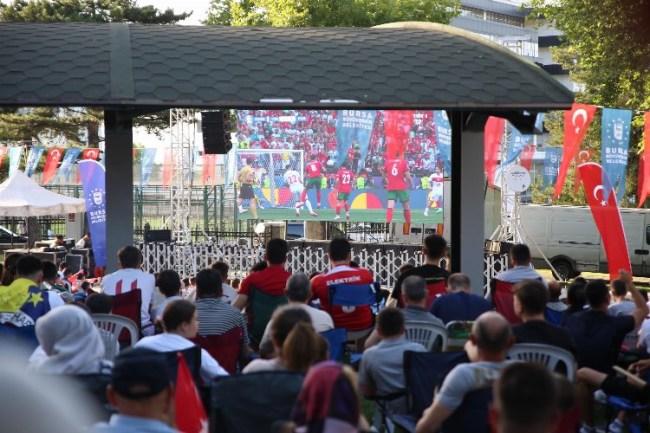 Büyükşehir Belediyesi tarafından Kent Meydanı, Mihraplı Parkı, Kumla İskele Meydanı ve Yıldırım Sağlık Parkı'nda hazırlanan alanlara akın eden yüzlerce vatandaş, ellerinde Türk bayrakları ile Portekiz maçının heyecanını yaşadı. Dakikalar öncesinden alanları dolduran Bursalılar, A Milli Takımın mücadelesini omuz omuza izledi.