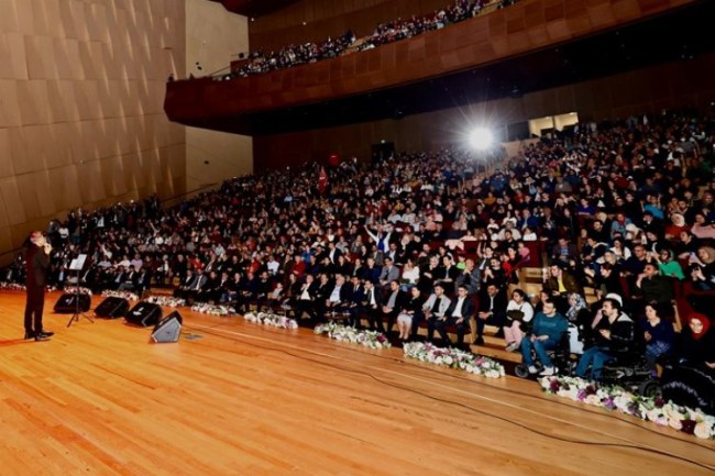 DENİZLİ (İGFA) - Denizli Büyükşehir Belediyesi, Türk müziğinin sevilen ismi Mustafa Yıldızdoğan konseri düzenledi. Büyükşehir Belediyesi Nihat Zeybekci Kongre ve Kültür Merkezi Özay Gönlüm Salonu'nda düzenlenen konsere, Denizli Büyükşehir Belediye Başkanı Osman Zolan, MHP Denizli İl Başkanı Mehmet Ali Yılmaz, Kültür ve Sosyal İşler Dairesi Başkanı Hüdaverdi Otaklı, davetliler ve binlerce vatandaş katıldı. Yıldızdoğan'ın seslendirdiği "Ölürüm Türkiyem", "Şehitler Ölmez, "Saçların", "Kızıl Elmam" ve pek çok eserine binlerce kişi hep bir ağızdan söyledi. Zaman zaman duygusal anların da yaşandığı konsere katılanlar Yıldızdoğan'ın şarkıları ile unutulmaz bir gece yaşadı. Konser bitiminde Mustafa Yıldızdoğan, Başkan Zolan'a teşekkür ederek, "30 yıldır Avrupa'ya pek çok yere konsere gideriz ama ben böyle bir salon görmedim. Canı gönülden Başkanımıza özel bir alkış rica ediyorum, hizmet budur" diye konuştu.