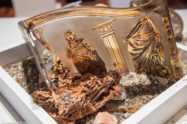 İzmir yöresinin antik buluntularının cama kazınarak işlendiği eserlerden oluşan "Camda Antik İzmir Koleksiyonu" sergisi Ahmed Adnan Saygun Sanat Merkezi'nde açıldı. Ürkmez Kültür Merkezi Cam Süsleme Atölyesi sanatçıları Gülten ve Melih Kular'ın öncülüğünde 33 kursiyerin emek verdiği sergi 31 Ağustos'a kadar açık kalacak.