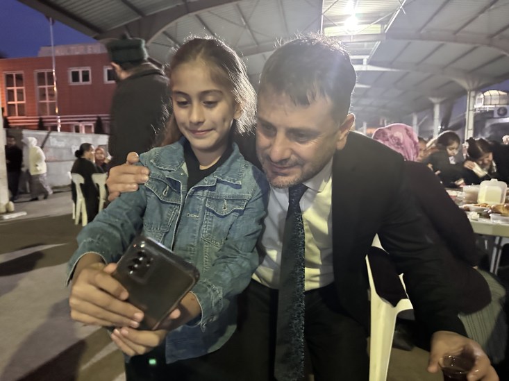 Tek tek masaları gezen Başkan Palabaş, iftar sonrası davul zurna eşliğinde vatandaşlarla stres attı.