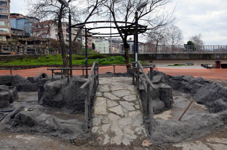Alaplı Belediye Aile Çay Bahçesinde çevre düzenlemesi ve yapay şelaledeki yenileme çalışmaları devam ediyor.