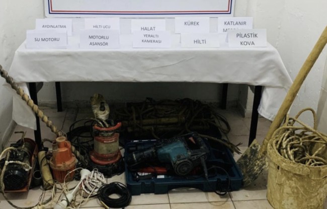 Zonguldak İl Jandarma Komutanlığı ekiplerince 07 Mayıs 2023 günü Çaycuma ilçesi mülki sınırları içerisinde icra edilen operasyonda; (5) şahıs kaçak kazı yaptığı esnada, (1) adet ip merdiven, (2) adet su çekme motoru, (2) adet kürek, (1) adet elektrikli vinç, (1) adet keser, (1) adet yılan kamera, (1) adet ledışık, (2) adet hilti ile birlikte suçüstü yakalanmıştır.