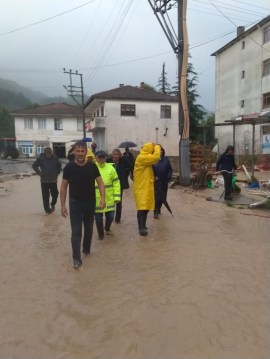 Çaylıoğlu sel altında.. Vekil Bozkurt olay yerinde