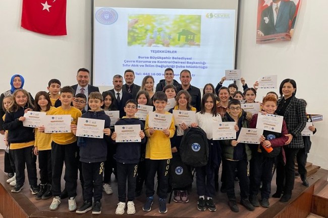 Bursa Büyükşehir Belediyesi ve İl Milli Eğitim Müdürlüğü işbirliğinde, çocuklarda çevre hassasiyetini arttırmak ve gelecek nesillere daha yaşanabilir bir kent bırakmak amacıyla projelendirilen ‘Çevre Okur-Yazarı' projesinde 1'nci modül tamamlandı. "Sıfır Atık, Geri Dönüşüm ve Atık Azaltımı" konulu proje yarışmasını kazanan öğrenciler, hayvanat bahçesi gezisi ile ödüllendirildi.