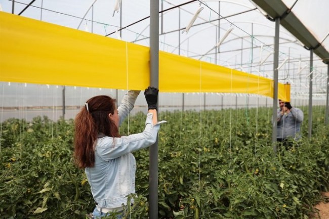 DENİZLİ (İGFA) - Kırsalda üretimi artırarak çiftçinin daha çok kalkınmasına katkı sağlamak amacıyla tarım ve hayvancılıkta bugüne kadar 50'yi aşkın proje hayata geçiren Denizli Büyükşehir Belediyesi, sera üreticilerini de unutmadı. Denizli Büyükşehir Belediyesi, bu kapsamda Tarım ve Orman İl Müdürlüğü işbirliğinde başlattığı proje ile büyük bir kısmı domates üreticisi olmak üzere 450 sera işletmesine zararlılara karşı mücadelesi için sarı yapışkan tuzak desteği verdi. Son yıllarda yaşanan iklim değişiklikleri nedeniyle verimde düşüşler, zararlı böcek popülasyonlarında ve virüs hastalıklarında artışların gözlendiği, bu nedenle virüs taşıyıcısı beyazsinek, yaprak bitleri, thripsler, domates güvesi ve yaprak galeri sinekleri ile biyokteknik mücadelenin önem kazandığına dikkat çekilirken, 450 sera işletmesine 2 bin 200 adet sarı yapışkan tuzak desteği verildiği kaydedildi.