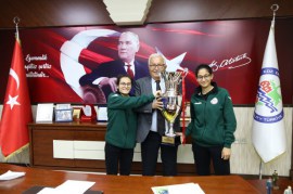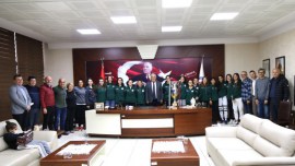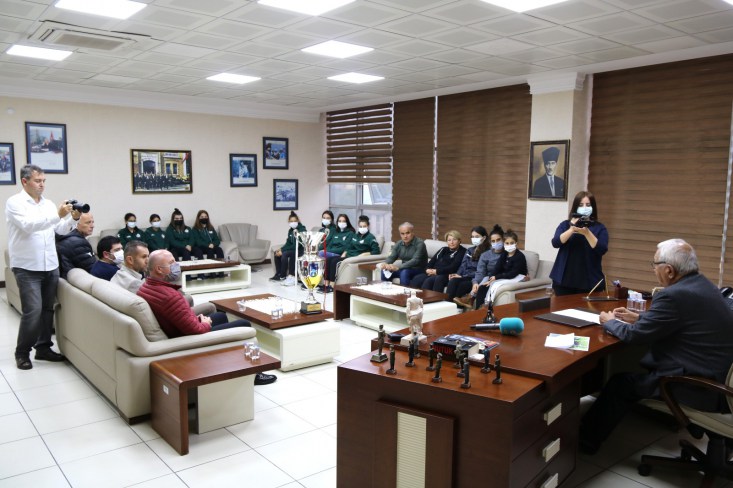 ABB Fomgetspor Kadın Futbol takımı ile Ankara’da oynadığı 29 Ekim Cumhuriyet kupası maçını kazanarak kupanın sahibi olan Kdz. Ereğli Belediyespor Kadın Futbol takımı Kdz. Ereğli Belediye ve Belediyespor Kulüp Başkanı Halil Posbıyık’ı makamında ziyaret ederek kupayı teslim etti.