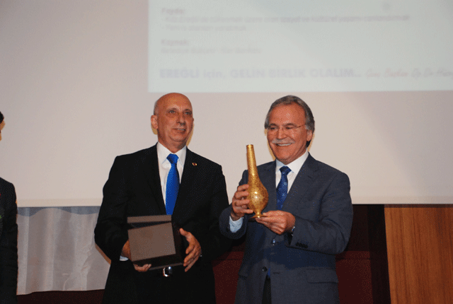 Bölgemizde de geçmişte olduğu gibi bugün de devamlılık üzerine siyaset yapıyoruz. AK Parti Ereğlideki bu hizmet kalitesini istediği gibi başaramamış olabilir. Ereğlide siyaset gerçekten çok zor. Ben Ercan (Candan) kardeşime bir kez daha başarılar diliyorum. İyi şeyler yapıyor. Kendisini tebrik ediyor, kutluyorum. (Ereğli Belediye Başkanı Halil Posbıyıkı kastederek) Zor adamın yanında siyaset yapmak gerçekten zordur. Keşke kolaylaştırıcı olsa, keşke çözüm üretse. Birlikte olduğumuzda bir yılda yaptığımızı, beraber olmadığımızda 20 yılda yapamıyorsun. Türkiyenin Kayserisi Bursası, Konyası bu işi başarmışsa Karadeniz Ereğli bu işi neden başarmasın? Yarım kalmış bir işimiz var. Hep beraber bunu tamamlamaya varmıyız?