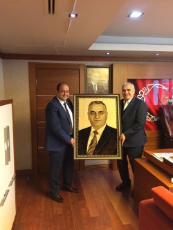 Başkan Demirtaş, Türk Metal Sendikası Genel Başkanı Pevrul Kavlak ile bir süre sohbet ettikten sonra Genel Başkan Yardımcısı Yusuf Ziya Odabaş’ı da ziyaret etti. Demirtaş, Odabaş’a da üzerinde resminin bulunduğu halı dokumasını hediye etti.
