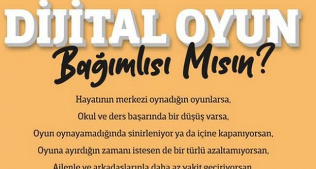 Hayatının merkezi oynadığın oyunlarsa, okul ve ders başarında bir düşüş varsa, oyun oynayamadığına sinirleniyor ya da içine kapanıyorsan, oyuna ayırdığın zaman istesen de bir türlü azaltamıyorsan, ailenle ve arkadaşlarınla daha az vakit geçiriyorsan, Sende bağımlı adayısın, “Oyuna değil, Hayata bağlan”