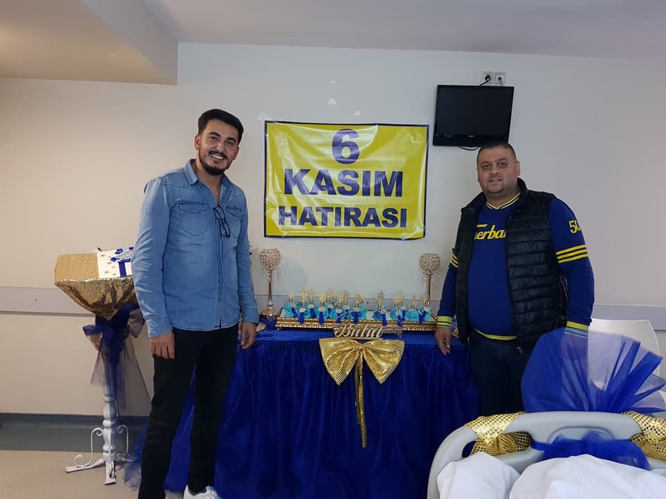 Fanatik Fenerbahçeli olan Baba Yiğitoğlu, Kdz.Ereğli Özel Echomar Hastanesi'nde yapılan doğum sonrası kendilerine ayrılan özel odayı Fenerbahçe formaları ve bayraklarıyla donattı..