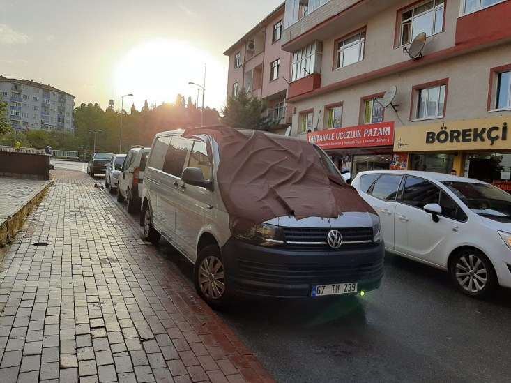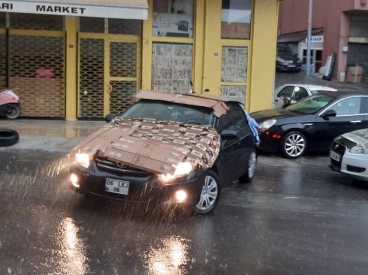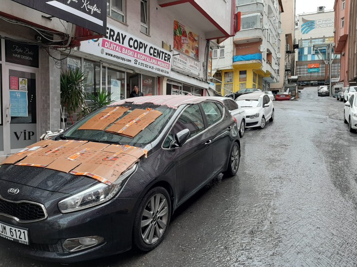 Araçların, battaniye, çarşaf, karton, eşya koruma köpüğü ve araç paspasları ile kaplanması ilginç görüntüler oluşturdu. Bazı araç sahipleri de boş buldukları bina çıkıntılarına araçlarını çekerek, korumaya aldılar.