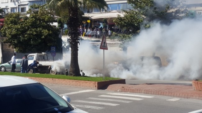 Kdz.Ereğli şehir merkezinde pikap tarzı araçtan yükselen dumanlar kısa süreli panik yaşanmasına neden oldu.