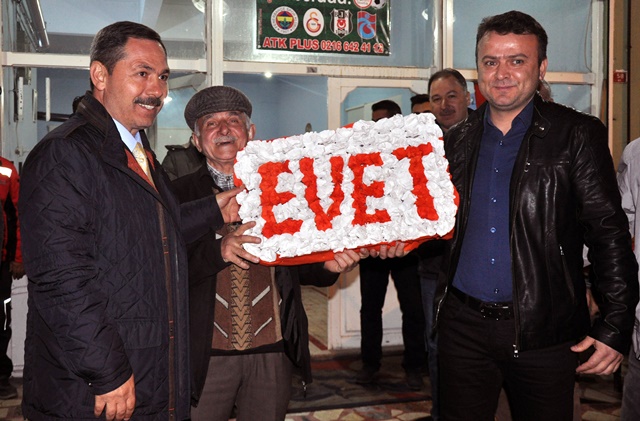 Başkan Uysal, yeni sistemde yüzde 50+1 oy alarak hükümet olmak isteyenin mecburen her kesimi kapsayacağını ve kutuplaşmaların azalacağını belirterek; “16 Nisan’da Ülkemizin geleceği için partililiği, parti görüşünü bir kenara bırakalım, renk, desen bir kenara bırakalım, hangi görüşe sahip olursak olalım, gelin vatanımız için, ülkemiz için Evet diyelim. Bu ülkenin şahlanışını, dirilişini, ayağa kalkmasını isteyen büyük-küçük herkes hep birlikte Evet dememiz lazım. Cumhurbaşkanlığı hükümet sistemiyle 5 yılda bir seçim olacak ve 2 seçimi bir arada yapacağız. Cumhurbaşkanını ve Milletvekillerini aynı anda seçeceğiz. Bu akıl, uyum, uyumlu olmak ve kutuplaşmamayı gerektirecek. Çok önemli elimizde bir fırsat. Bu sistem kutuplaşmaları azaltacak. Çünkü eğer hükümetin başında olmak yüzde 50+1 oy almak istiyorsan, benim değişik görüş, inanç, kültür her kesimi kucaklamam gerekecek. Herkesten oy almam gerekecek. Bu sistem böylece siyasetin dilini de yumuşatacak” dedi.
