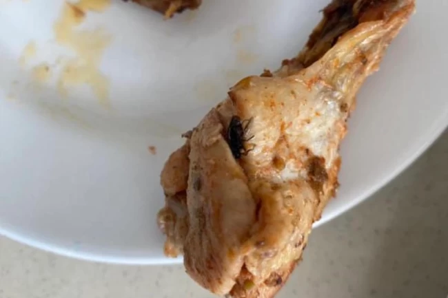 Taşeron firmanın hazırladığı tabldotta yer alan tavuk yemeğinde ölü bir sinek fark eden işçiler, büyük şaşkınlık ve öfke yaşadı.