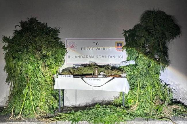 DÜZCE (İGFA) - Yapılan operasyon sonucunda şahsın Yunusefendi köyündeki ikametinin bahçesinde yasadışı kenevir bitkisi yetiştirdiği tespit edildi.