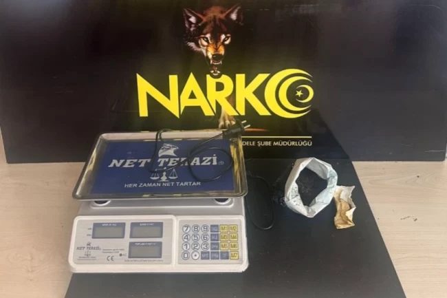 Sefer DEMİR / DÜZCE (İGFA) - Belirlenen adrese yönelik gerçekleştirilen operasyonda 1 şüpheli yakalanırken, yapılan aramalarda 2 parça halinde 140 gram sentetik kannabinoid ile 1 adet hassas terazi ele geçirildi.