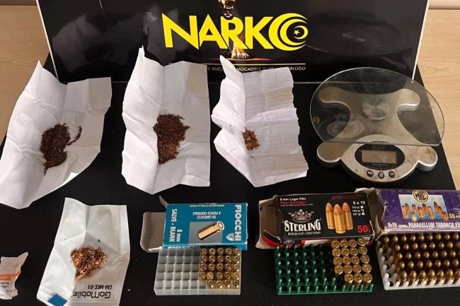 Aramalarda, 5 parça halinde toplam 15 gram sentetik kannabinoid (bonzai), 1 gram metamfetamin, 1 hassas terazi, uyuşturucu kullanımına yarayan 1 cam aparat, 61 adet 9x19 mm tabanca fişeği ve 28 adet kuru sıkı fişeği bulundu.