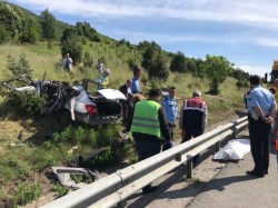 Çarpmanın etkisiyle yoldan çıkan otomobil yeşil alanda yaklaşık 60 metre sürüklenerek durabildi. Çarpma ve savrulmanın etkisiyle parçalanan otomobilde bulunan 3 kişi olay yerinde, 1 kişi ise kaldırıldığı hastanede hayatını kaybetti. Olay yerine gelen polis ekipleri, cumhuriyet savcısı ile birlikte kimliklerin tespiti için çalışmalarını sürdürüyor.