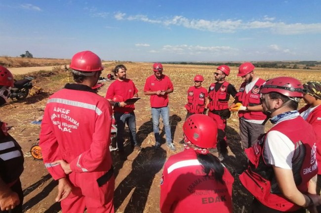 Bir süre önce, derneğe katılım sağlayan gönüllü üyelerin eğitim çalışmaların ilk etabı tamamlanmıştı. Bu kez, üyelerin sahadaki lojistik, arama kurtarma ve müdahale'ye yönelik eğitimleri gerçekleştirdi. Senaryoya göre; gelen ihbarı değerlendiren ekip enkaz bölgesine ulaşarak arama ve dinleme faaliyetini gerçekleştirdikten sonra müdahale çalışmalarına başlandı.