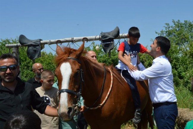Edirne İpsala'da özel eğitim alan öğrenciler için düzenlenen hipoterapi için düzenlenen sertifika töreni Saros Binicilik Merkezi2nde gerçekleştirildi.