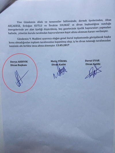 Altını çizerek söylüyoruz ki, EGD'nin kongre evrakları eksik değildir. EGD mevcut yönetime muhalif olduğu gerekçesiyle Akbıyık'ın da içerisinde bulunduğu bir grup tarafından binbir ayak oyunlarıyle oy kullanması engellenmiştir..