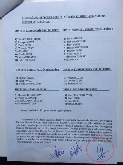 Ekte gönderdiğimiz liste tamamen bilgisayar çıktısı olup, altında Akbıyık’ın imzası bulunmaktadır. Dolayısıyla Akbıyık, her platformda kendini aklama çabası içerisinde yalana başvurduğu gibi Alaplı’daki toplantıda da yalana başvurmaktan geri kalmamıştır!..