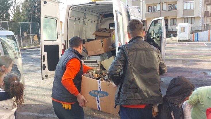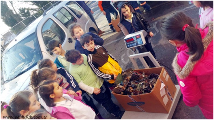 Öte yandan belediye ekipleri, İzmirlioğlu İlkokulundan 238,1 kilo, İmam Hatip Lisesinden de 180 kilo-atık alırken, öğrenciler ve öğretmenleri müdürlük personeliyle hatıra fotoğrafları çekti.