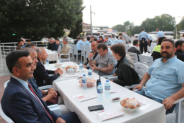 İlçe Emniyet Müdürü Fahri Küçük ve çalışma arkadaşlarının personelle birlikte iftarda buluşma programı çerçevesinde düzenlenen organizasyon için emniyet binasının giriş bölümündeki geniş alan belirlendi. Emniyette ve hep birlikte yapılan iftara personel davet edildi.