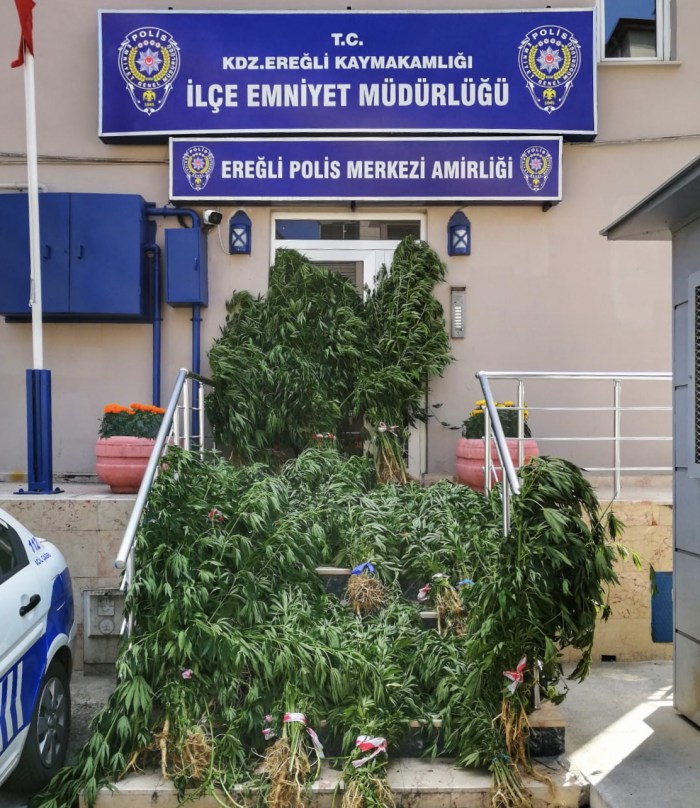 Kdz. Ereğli Narkotik Suçlarla Mücadele Grup Amirliği ve İlçe Emniyet Müdürlüğü ekipleri teknik takip sonucu satışa hazırlanan 741 kök hint keneviri ele geçirdi..