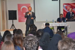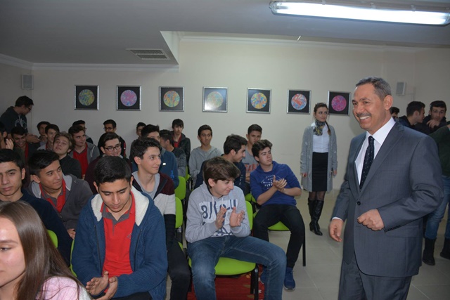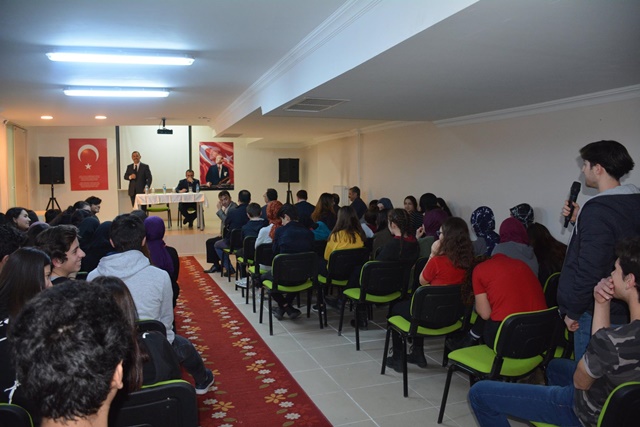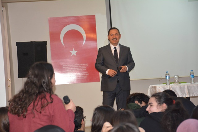Okulun konferans salonunda öğrencilerle de bir araya gelen Başkan Hüseyin Uysal, kısa bir değerlendirmede bulunduktan sonra yaklaşık 1 saat boyunca öğrencilerin sorularını yanıtladı.