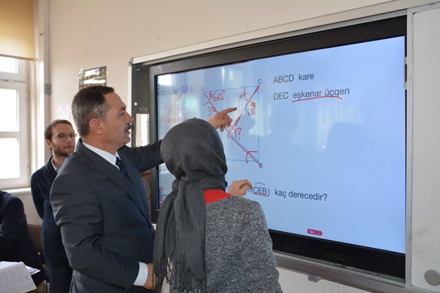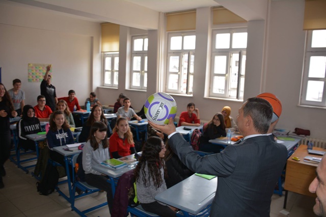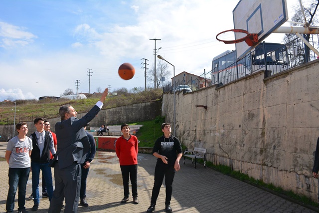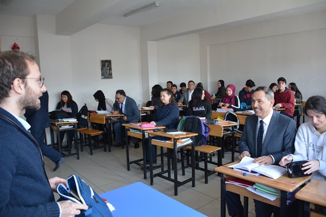 Okul Müdürü Haşim Çakır tarafından karşılanan Başkan Uysal, okul önünde bir süre öğrencilerle basketbol ve voleybol oynadı. Başkan Uysal ardından 10-D sınıfında Matematik, 9-C sınıfında ise Almanca derslerine bir süre konuk olarak öğrencilerle sohbet etti.