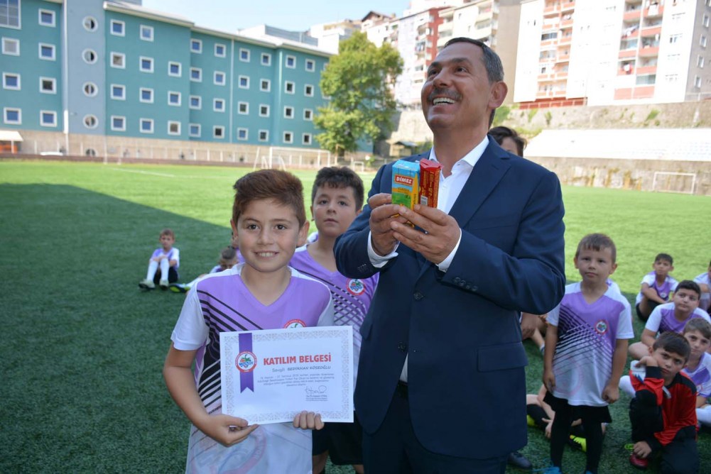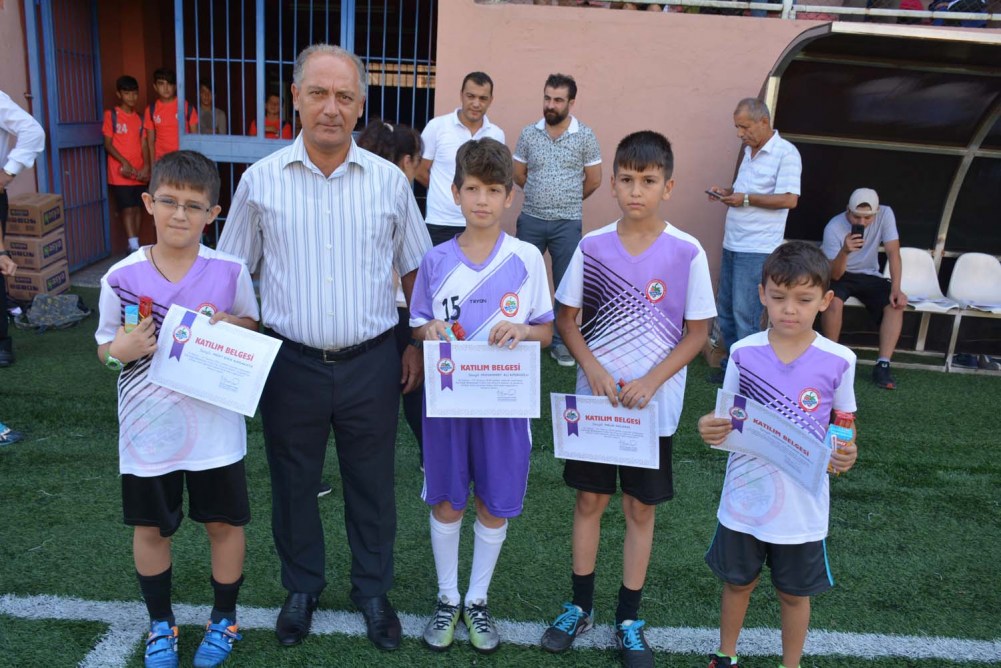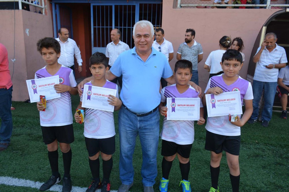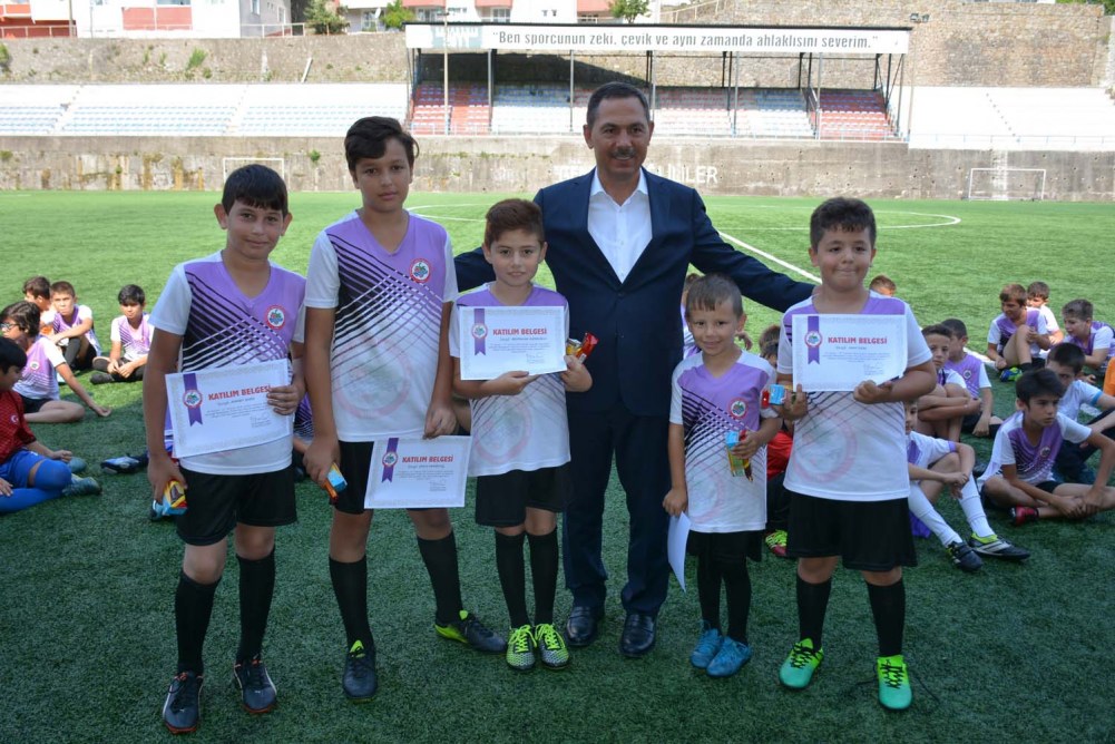 Başkan Uysal konuşmasının ardından futbol okulunda görev alan Antrenörler, Ömer Durak, Ulvi Göktan, Musatafa Danışmaz, İlgi Sezen ve Ceyhun Arslan’a teşekkür belgelerini verirken, genç yeteneklere de sertifikaları ile birlikte çikolata ve meyve suyu ikram etti.